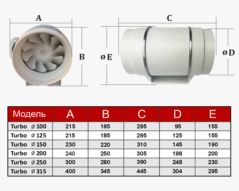 | Модель | ⌀ 315 |